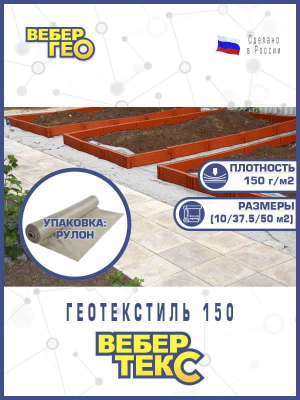 Геотекстиль Вебер.Текс "Универсальный" 150 г/м2 - это нетканый иглопробивной материал, который производится из полиэфира высочайшего качества. Материал имеет высокие дренирующие, армирующие, разделяющие свойства.